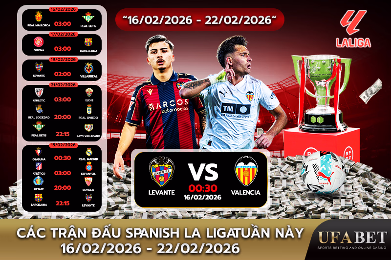 - Levante UD vs. Deportivo Alaves: Levante UD gặp gỡ Deportivo Alaves vào 03:00 GMT+7.